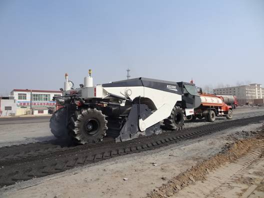 我公司去年研發成功的全電控機械傳動路面冷再生機RZ2300,從今年3月出廠以來,先后轉戰3個工地,中間雖小有波折,但經我公司技術人員的調整,隨著機手逐漸熟悉機器的性能,孰練掌握機器的操作技巧,機器的工作速度越來越快。今天,從項城S102省道工地傳來喜訊,水穩路基冷再生施工,機器老板親自指揮機手操作機器,讓機手逐步加快機器的工作速度,機器老板高興地打來電話說,機器工作速度出乎意料地快,驅動輪胎轉一圈只要24秒,計算結果是一分鐘可以跑12米,這說明我們的機械傳動冷再生機的性能發揮出來了,機器的性能達到了設計要求,正如用戶所說,我們的新產品大有前途,可以與國際產品媲美。