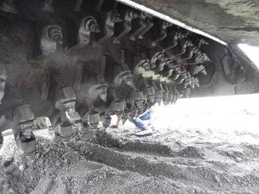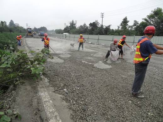 2014年6月,我公司冷再生機首次進入四川施工。先進入四川的是一臺600馬力WR2300L冷再生機,由河南隆裕工程公司于2011年向我公司購買,已工作了近四年,機器狀態仍然很好。冷再生工程為郫縣唐太路道路改造工程,主要路基的大修采用冷再生工藝。唐太路為水穩路基結構,與華東等大部分地區不同的是路基下有大量的鵝卵石,這會對銑刨轉子造成很大的磨損,如果機器不是裝備了可折卸刀庫重型轉子,這個工程是不可能做下去的,刀具的損耗很大,齒套也有較大的磨損。施工隊伍在高經理的帶領下,無論是施工速度還是施工質量均獲得管理方的好評,打消了承包方最初對國產設備的疑慮。