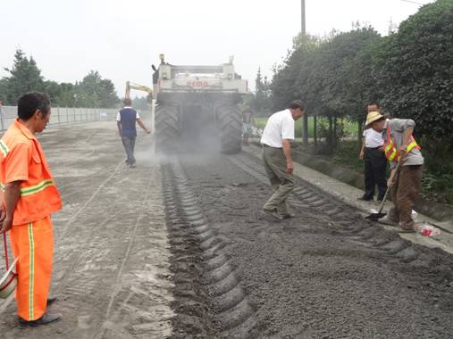 鄰近的沙西線也在做冷再生工程,由于是同一承包工程公司也中標了其中一段路,這套冷再生機組被調去做了一段試驗段,兩天干了7560平方米,這個屬于正常的施工速度。相鄰標段有一臺進口的WR2000,一天只能干1800-2000平方,無論是業主、施工管理方還有其它配套機械都對這個工作速度不滿意,甚至連撒水泥的民工意見都大得很,因為他們的工錢也是按平方結算的,想多干而不可得。項目部協調我們這臺WR2300L去打了一段,實際驗證速度確實更快。項目部這才確定不能盲目推崇進口機器,國產機器也是可能勝過進口機器的,很快,項目部與用戶簽定了合同,退掉WR2000,租用我們的機器,我們推薦的是比WR2300L速度更快的機械傳動RZ2300冷再生機。